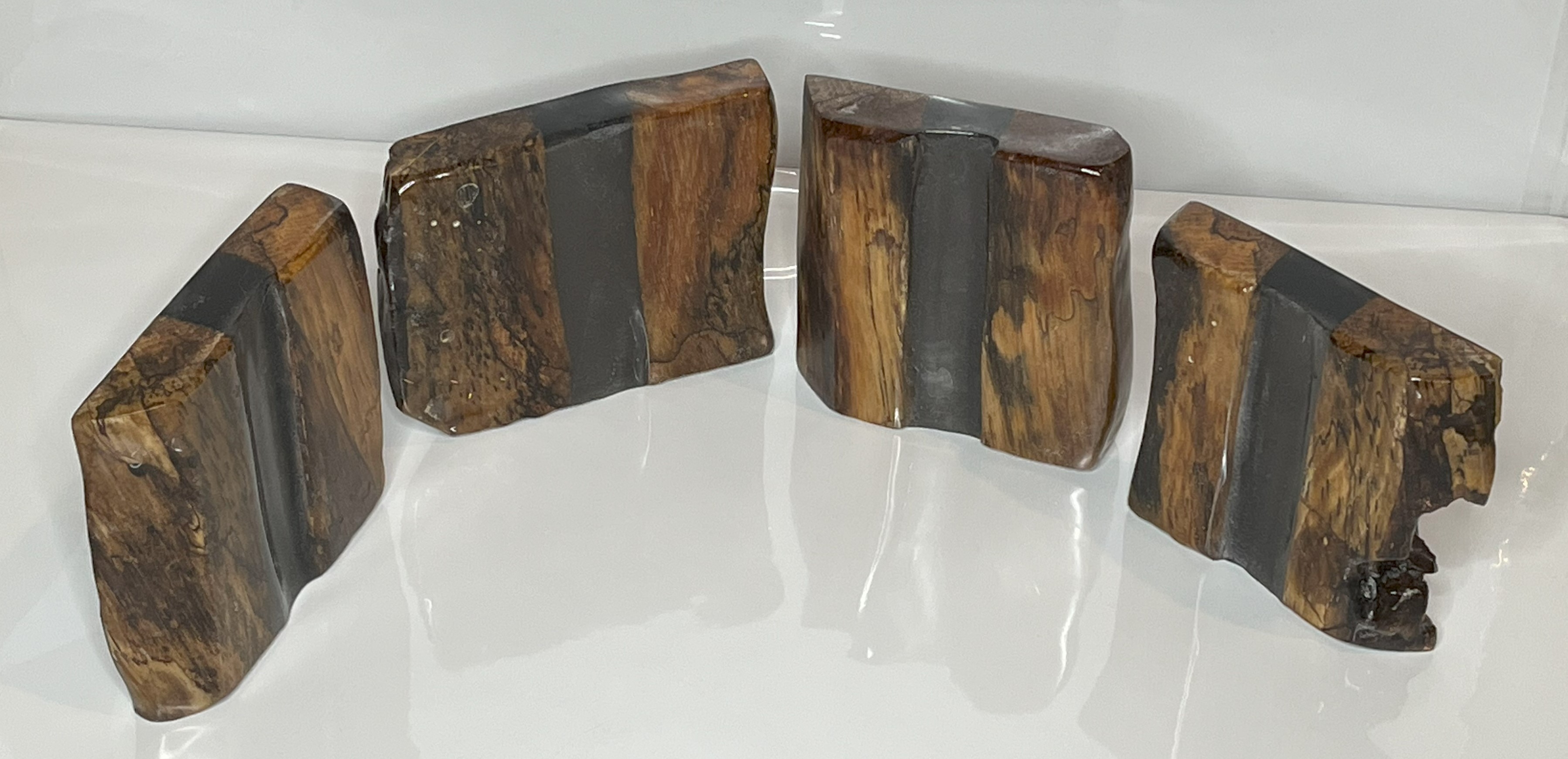 Each coaster is 4″ by 4″ by 1″ … well that was at least the intention. The specifics of the wood determined the final size.